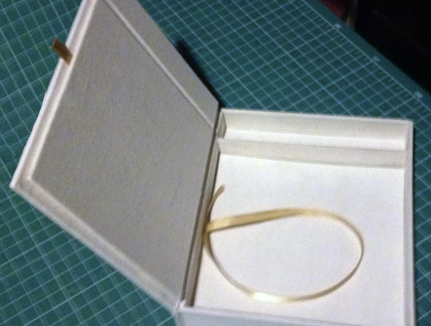 Trata-se de um recipiente compartimentado confeccionado para conter fotos impressas em formato quadrado, bem como espaço para um pendrive comum. Caixa tipo “Cigar Box” personalizada para entrega de fotos de casamento produzidas por uma talentosa fotógrafa de Belo Horizonte. Optamos pela abertura da tampa em 180 graus e tecido “americano cru”. Também foi utilizado um tirante em fita na cor dourada para as fotos e um facilitador para a abertura da caixa com todo o charme.