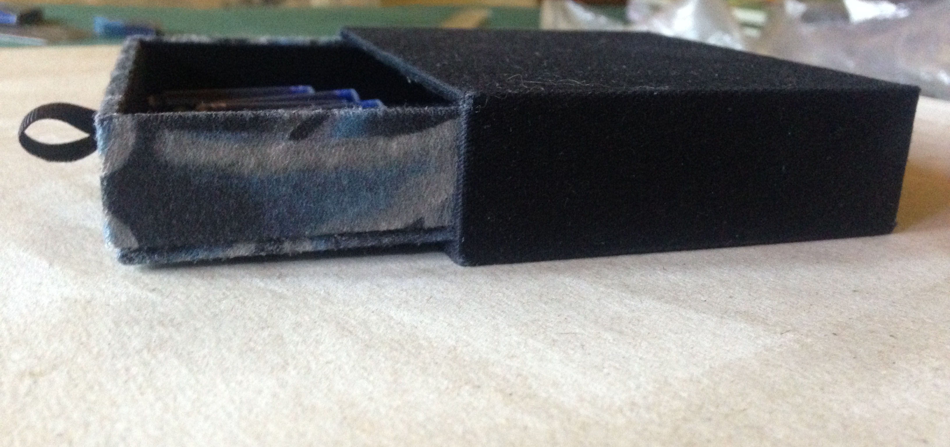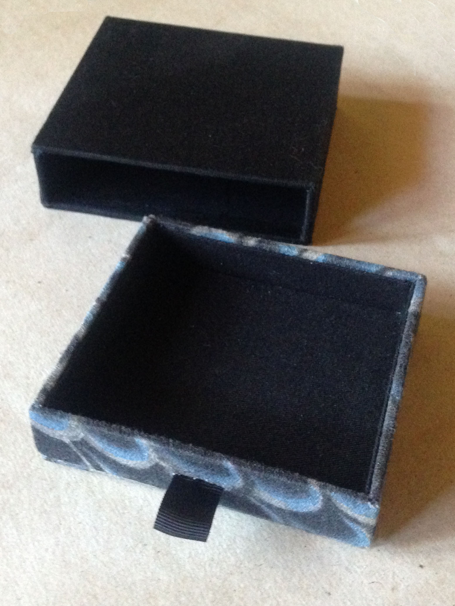 Caixa tipo gaveta com tecidos variados e tamanhos diversos para vários usos. Pode ser confeccionada com uma ou mais gavetas, de acordo com a necessidade.